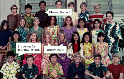 You can totally tell that Obama thinks he's "the One," the way he is standing in the top row and smiling down upon his flock that he will surrepticiously convert to be secret Muslims!